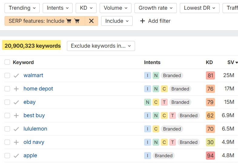 Using Ahrefs’ keyword database, we were able to identify a total of 20,900,323 shopping keywords.